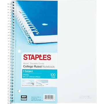 Staples Accel 1 Subject Notebook 8 5 X 11 College Ruled 100 Sheets White 25539m Staples